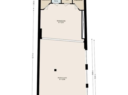 Ca. 108 m² b.v.o. begane grond winkelruimte;