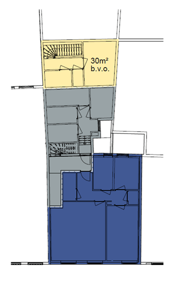 Ca. 30 m² b.v.o. eerste verdieping (opslag/pantry/toilet).